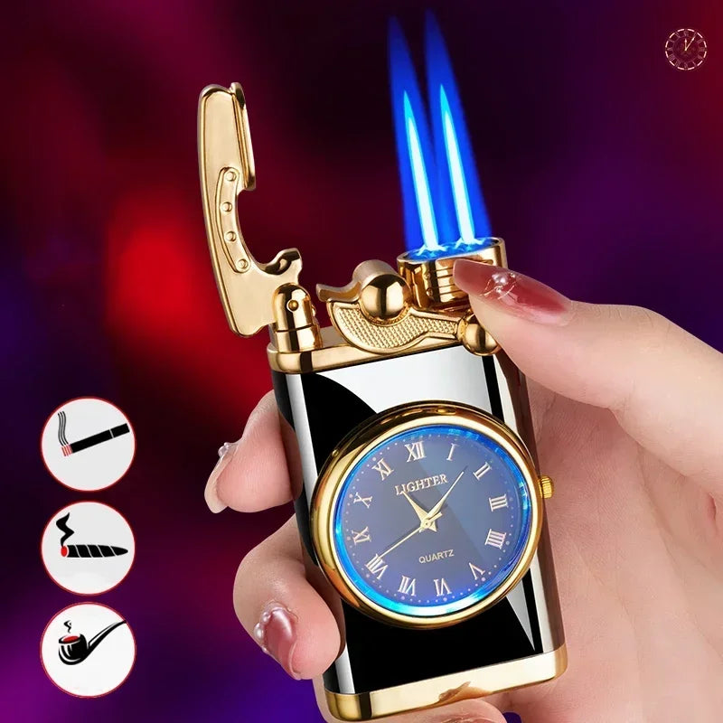 Windproof Gas Lighter Wrist Watch Cigar Lighter Outdoors Jet Double Tube Lighters Gadgets for Men Cigarette Accessories Fires